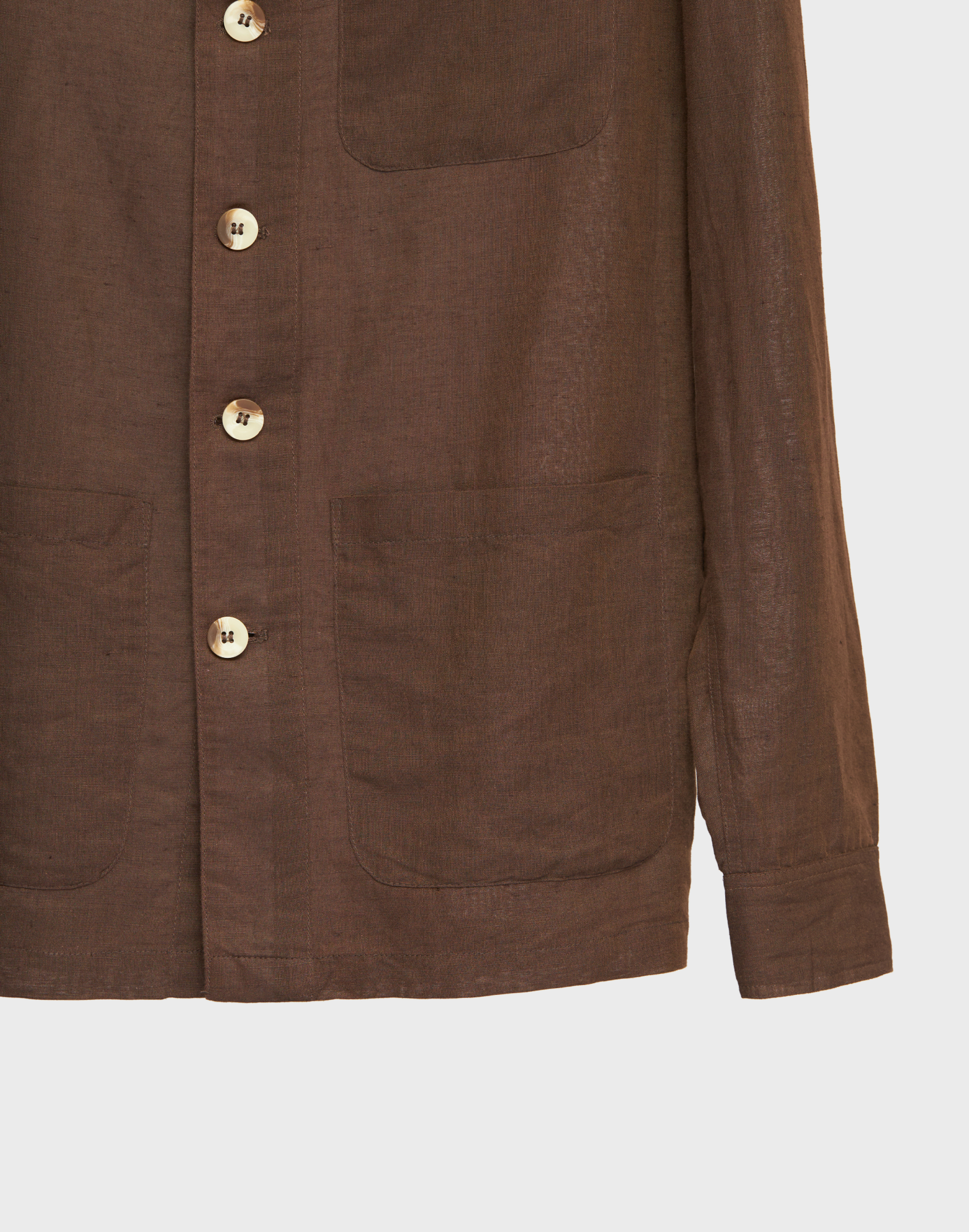 An everyday shacket reimagined in linen. Sleek and modern minimalist outfit for men. Effortless transition for that perfect balance of relaxed sophistication. Ideal for those who feel good while getting dressed.